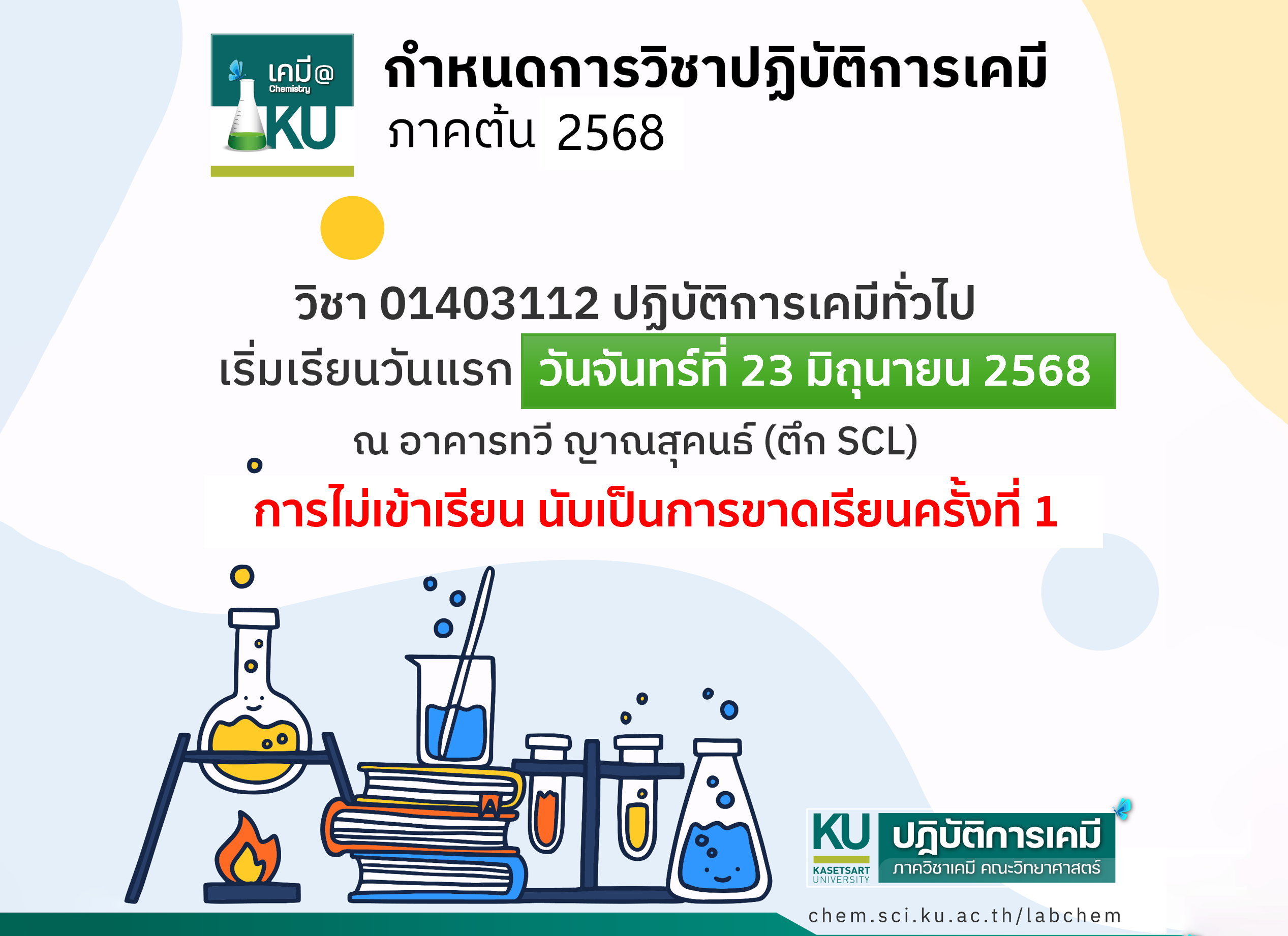 © 2025 ปฏิบัติการเคมี ภาควิชาเคมี คณะวิทยาศาสตร์ มหาวิทยาลัยเกษตรศาสตร์